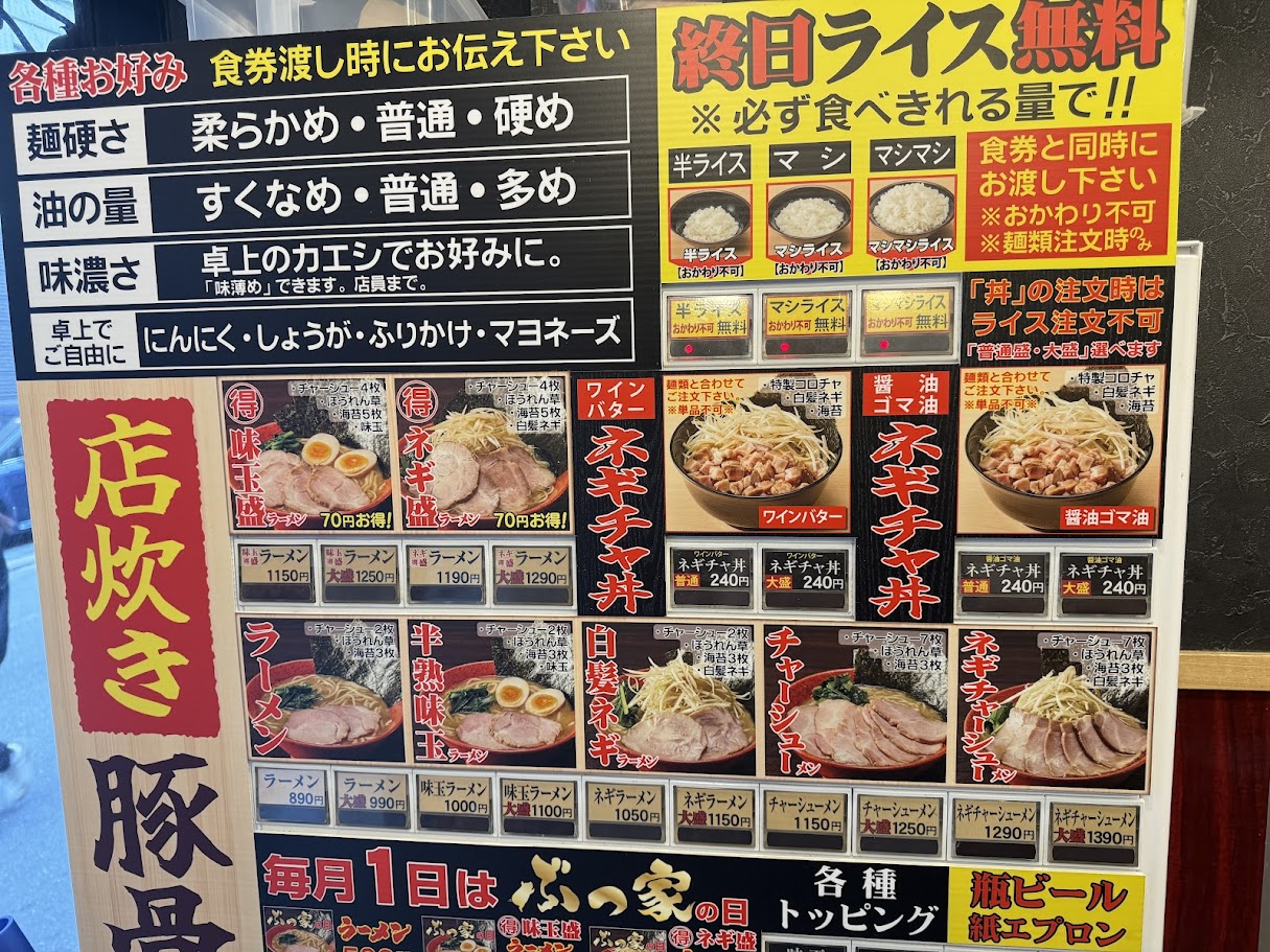 毎月1日はぶっ家の日でラーメンが500円だそうです。