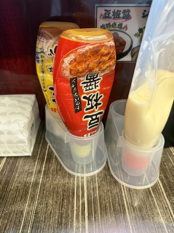 味変用の調味料は卓上に色々あり、今回はチューブの豆板醤と生姜をいただきました。