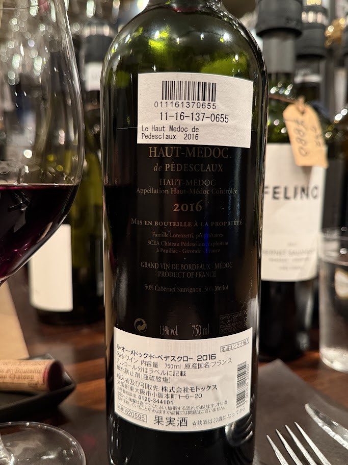 飲んだワイン シャトー・ペデスクロー/ル・オー・メドック・ド・ペデスクロー2016 7点
