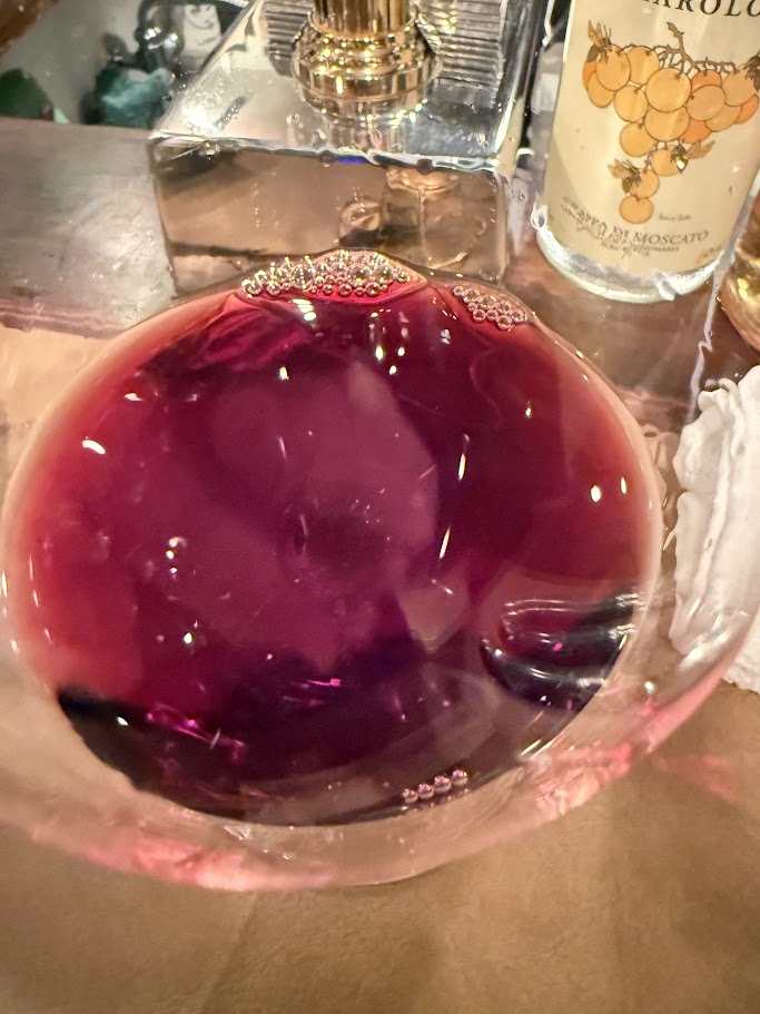 グラスからは、ラズベリーや赤いチェリー、クランベリーといった赤系果実の華やかな香りが立ち上がり、バラの花びらを思わせるフローラルなニュアンスが優雅さを添える。