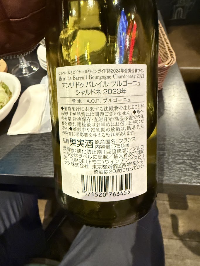 飲んだワイン ドメーヌ・ド・ロシュバン/アンリ・ドゥ・バレイル ブルゴーニュ シャルドネ2023 7点